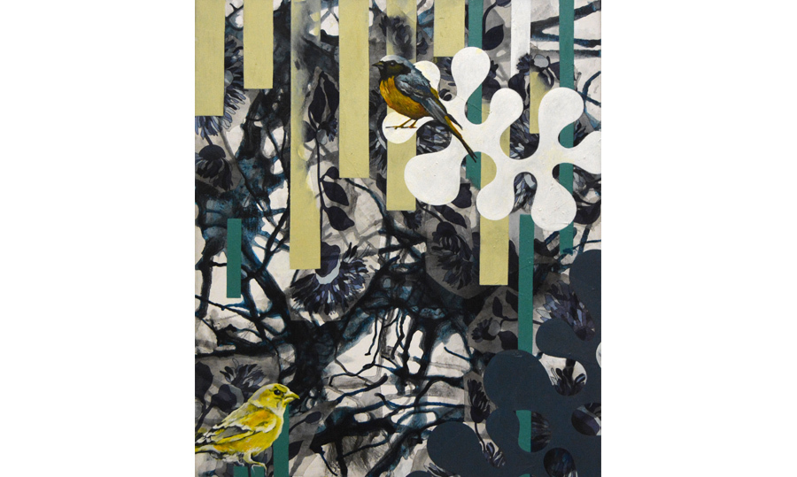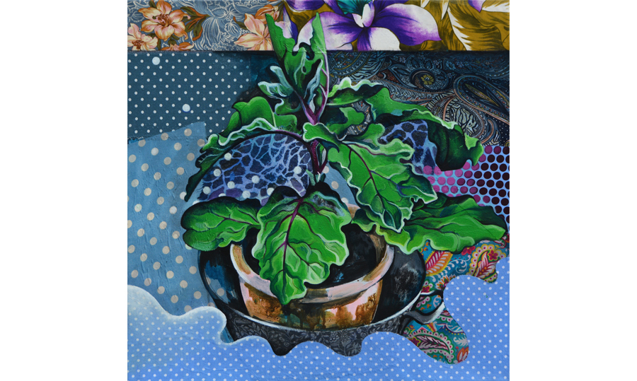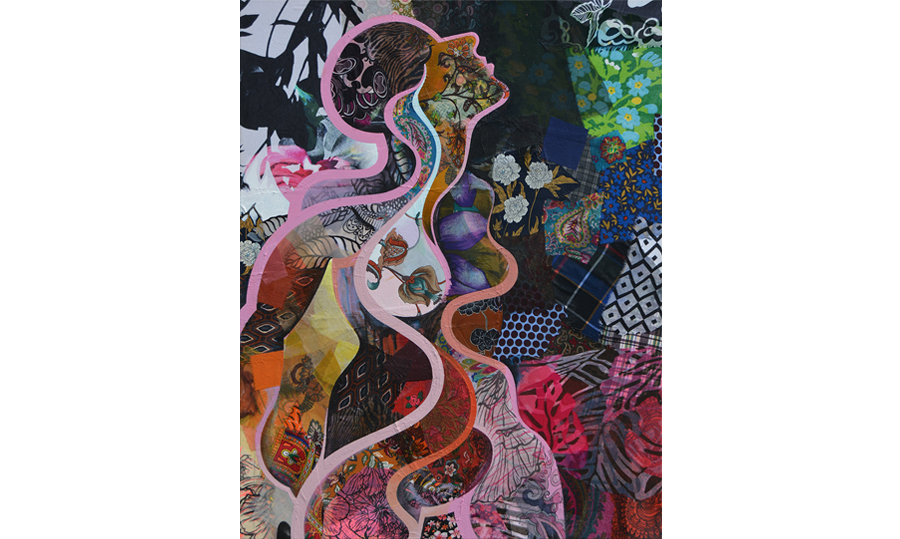 70x90 cm, Acryl og tekstil på lærred