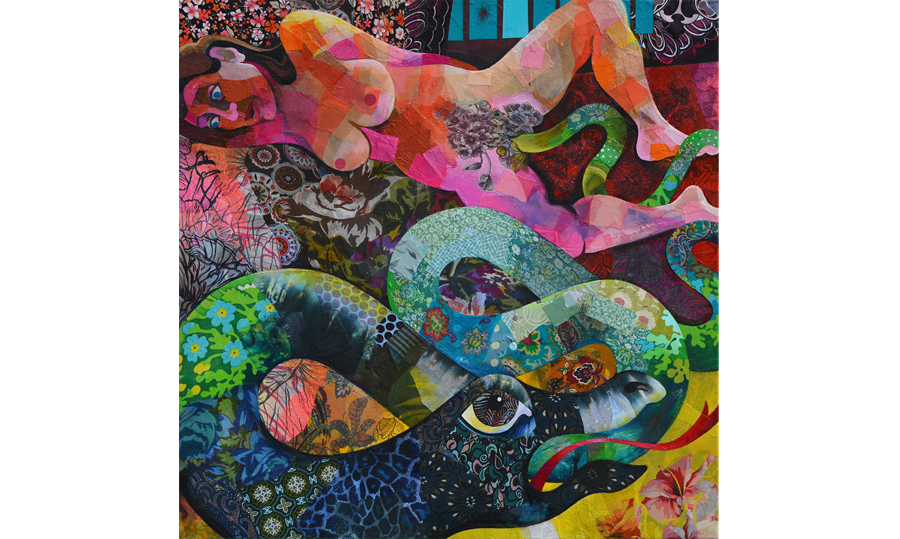60 x 60 cm, Acryl og tekstil på lærred