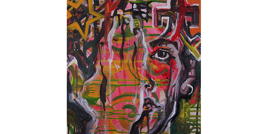 80x100 cm, Acryl og tekstil på lærred