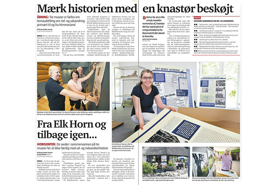 Jeg planlage og opsatte udstillingen sammen med Lars Rigborg, udførte grafisk opsætning af plancher og andet udstillingsmateriale, assisterede ved videointerviews og udviklede projektet #IndvandrerHimmerland.