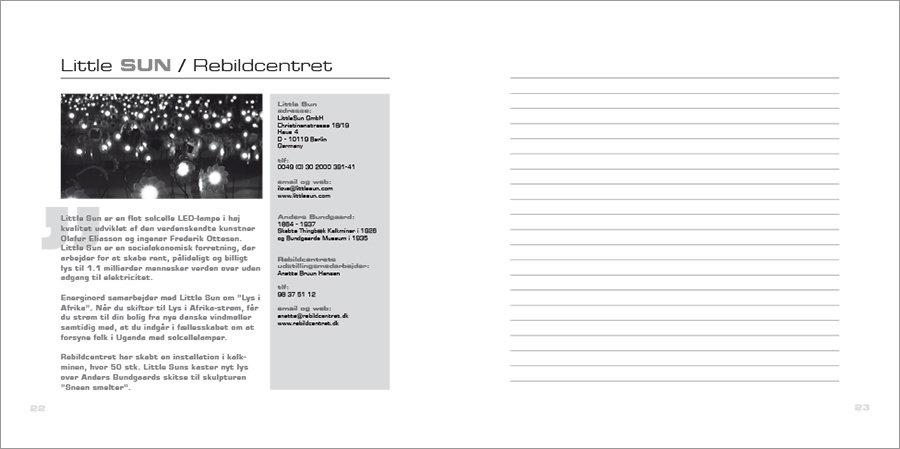 udførte selv en installation i kalkminen, indhentede økonomisk støtte, koraterede udstillingen,